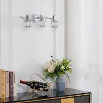 Wykończenie stalowej, chromowanej konstrukcji lampy, w której klosze wykonano z kryształowych prętów o przekroju trójkąta otaczających trzonek E27 daje spektakularne efekty, mieniąc się po załączeniu światła, ale także gdy żarówki się nie święcą.